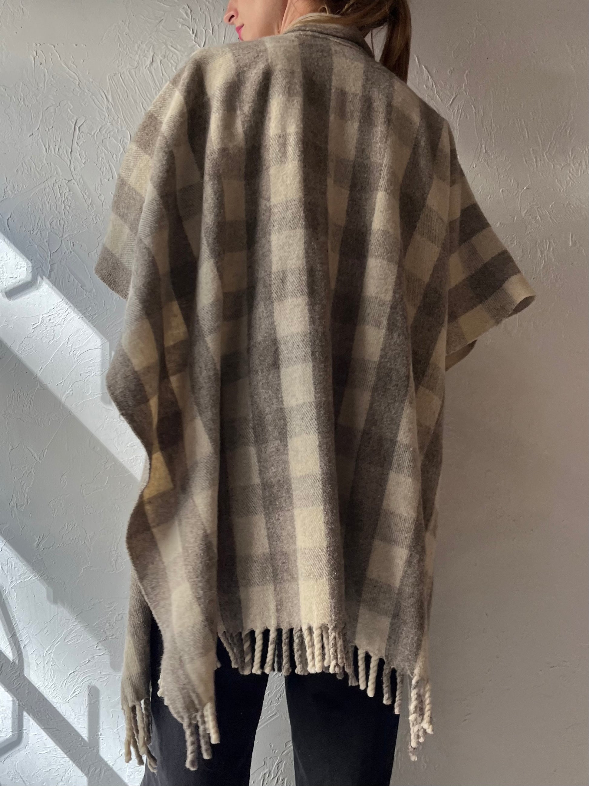Vintage Knit Plaid Cape / One size