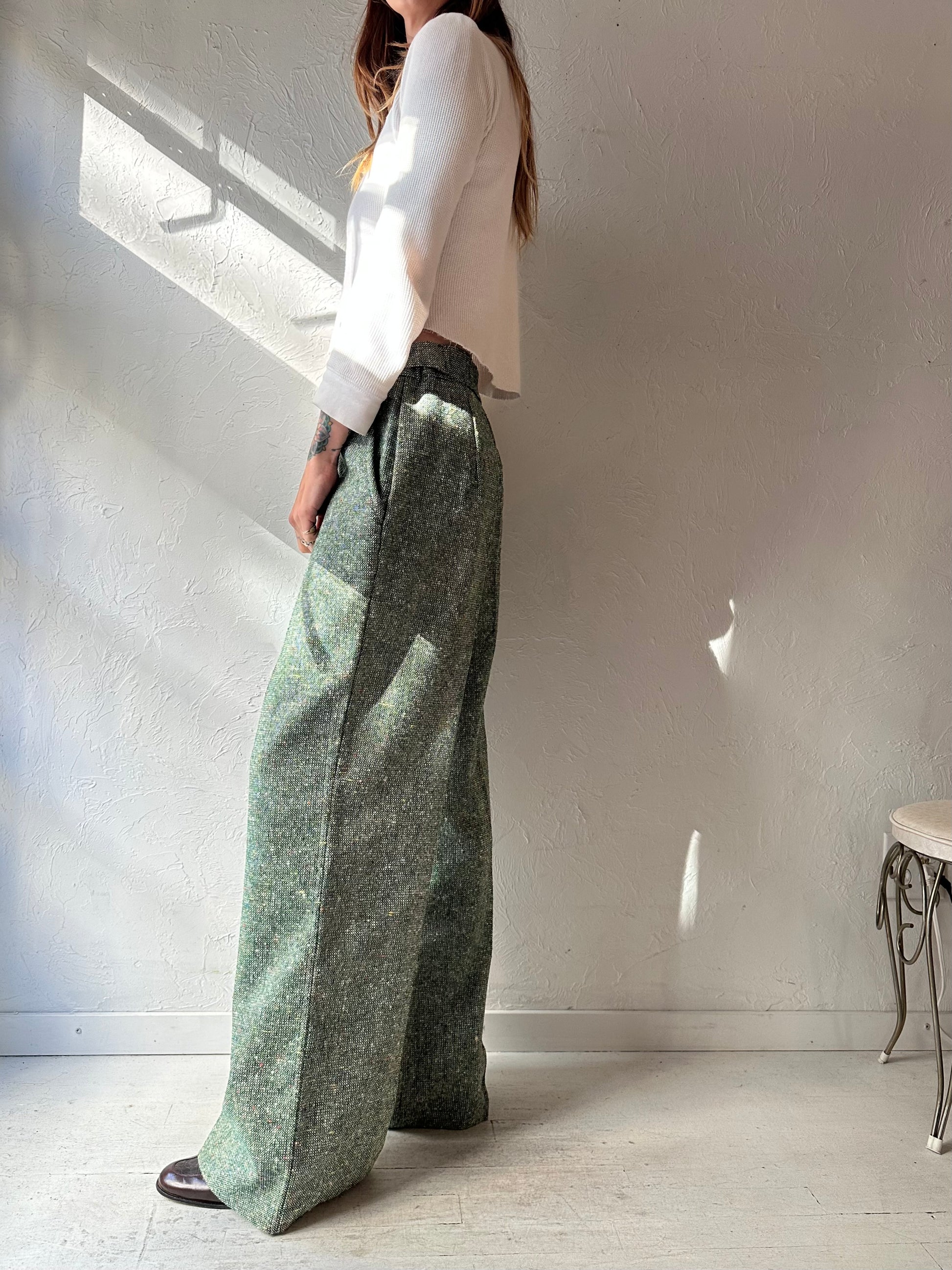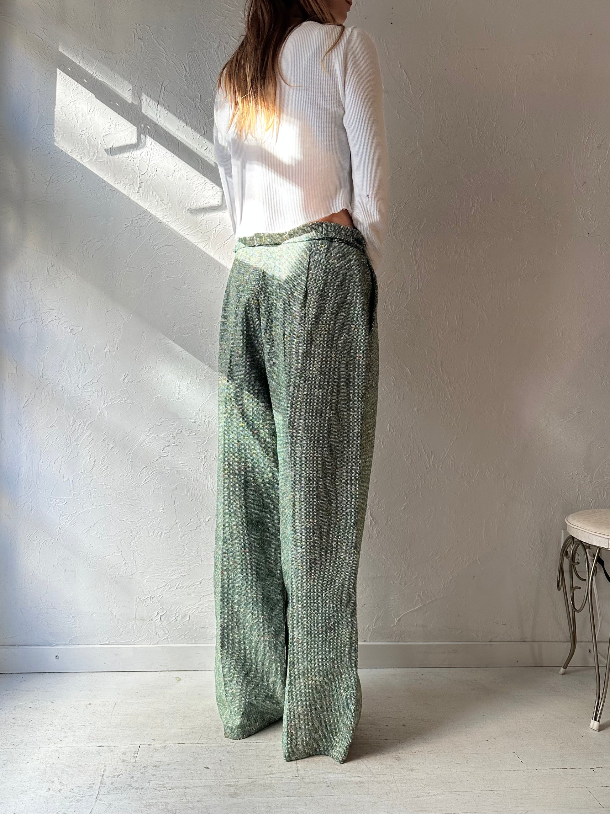 70s Green Tweed Knit Trousers / Small - Medium