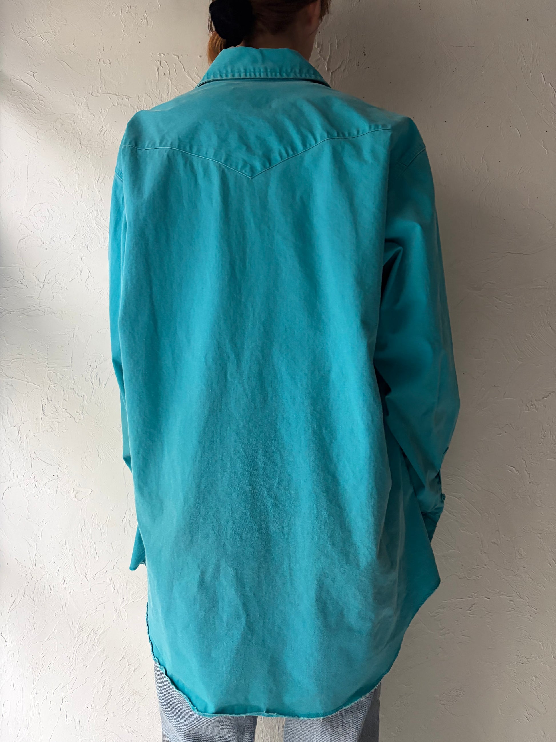 - Vintage Wrangler teal blue thick cotton button up shirt
