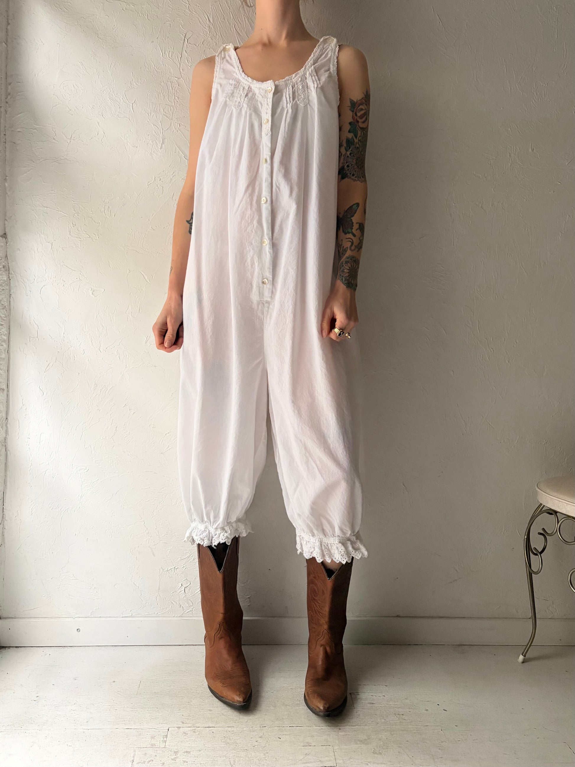 Vintage ‘April Cornell’ White Cotton Jumpsuit / Medium